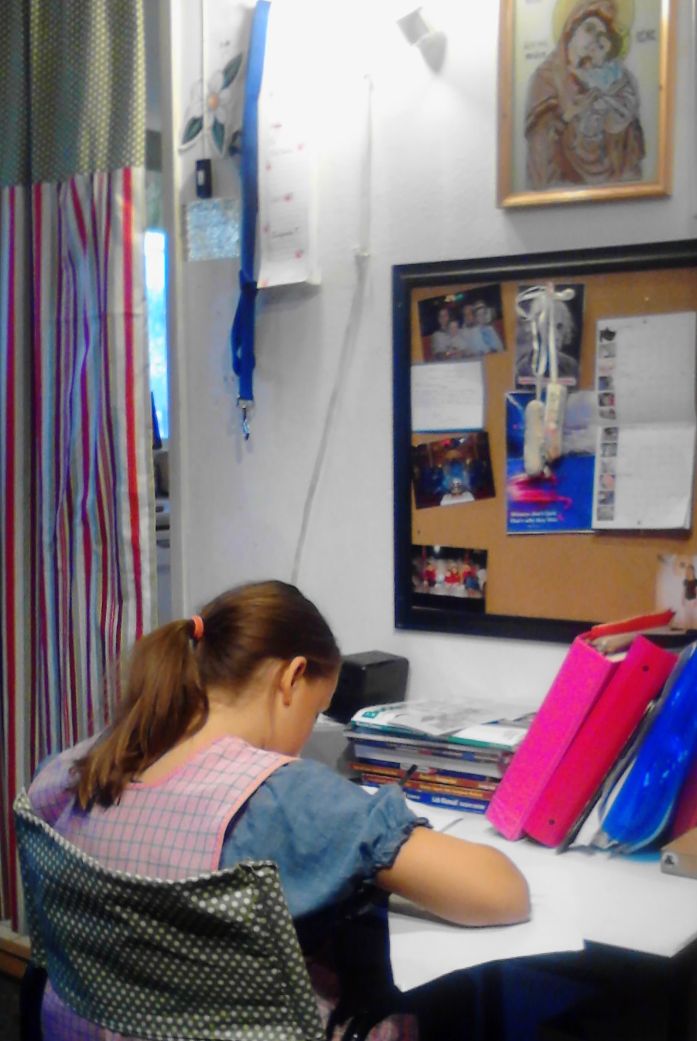 It took me less than an hour to replace the worn and faded black fabric of the girls' school chairs. Well, it took about an hour and a year or more. Procrastination, a tendency to laziness and perfectionism- these are excuses that can kill the soul. The chairs aren't perfect by any means, but my girls can study a bit more comfortably. I have a bit more of the dotted green fabric in my stash to use...hmmm...what's next? I am going to do a bit of stash-bashing and trying to pray while I am crafting every day for '31 Days.'